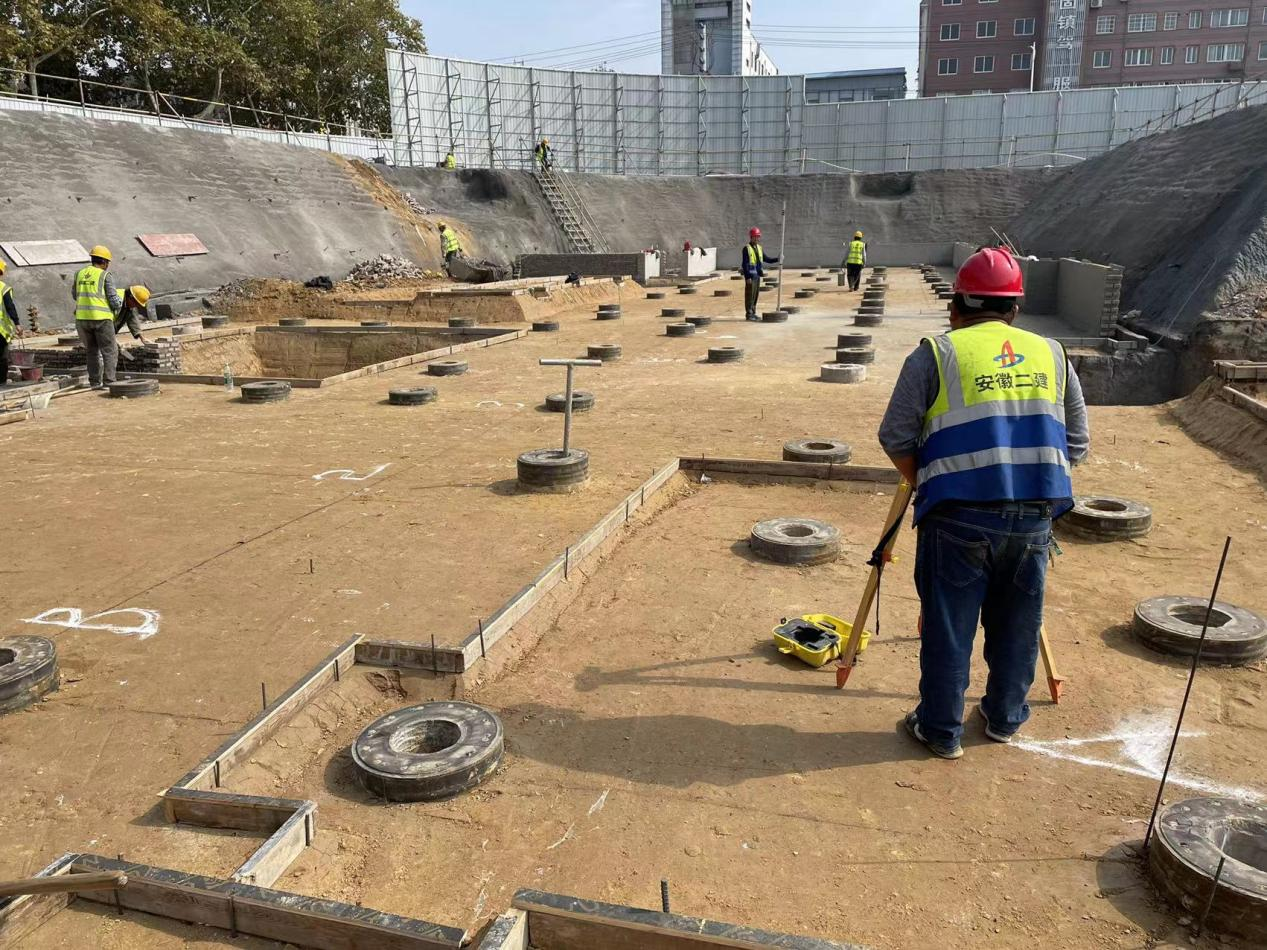 蚌埠市因疫情封城,项目管理人员面对工期紧、任务重的严峻形势,为将目标节点抓紧、抓实,以“起步就是冲刺”的大干姿态,坚守施工一线,抢抓工期进度,主动联系沟通当地防疫办及住建局等建设主管部门,克服重重困难,组织人、材、机进场,确保工程进度平稳推进。