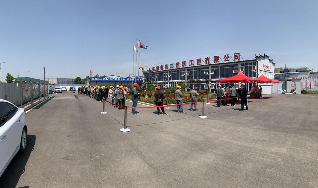 5月15日上午,第四分公司宿州三馆一院一中心PPP项目部组织现场全体员工及工友进行核酸检测。