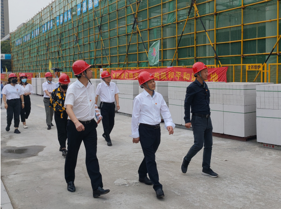 王军一行首先深入施工现场,详细查看了项目现场安全文明创建、工程质量、样板展示、施工进度等情况,查阅了党群工作资料,并到办公区、生活区全面了解职工的工作生活环境。随后,在听取了项目党支部书记“三号联创”的工作汇报后,验收组对项目创建工作取得的成绩给予了肯定,同时对项目创建过程中不足之处提出了意见和建议。检查组一行一致认为项目“三号联创”达到公司标准,通过验收。
