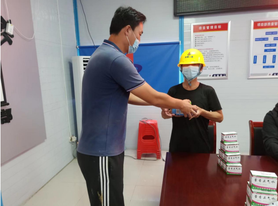 六月以来,许多地区逐渐进入高温酷暑天气。为保障现场作业人员的身体健康和生命安全,预防安全事故和高温中暑事件发生,确保安全生产,6月19日起,第四分公司淮南师范附属小学大通校区、阜阳文一云栖天境、河南宝丰物流园等项目为现场作业人员发放防暑降温药品。