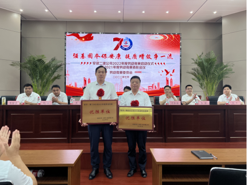 最后,随着主持人的一声号令,安徽二建公司“强基固本保安康 提质增效争一流”劳动竞赛正式启动!参加启动仪式的公司领导向各参赛单位进行授旗。