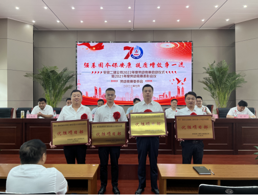 启动仪式上,公司党委委员、副总经理叶和永通报了2021年度“学党史、保安康、抢工期、争一流”劳动竞赛考核结果及表彰的决定。会议表彰了2021年度劳动竞赛优胜单位、优胜项目部。第三分公司、第四分公司等2家被授予“2021年度劳动竞赛优胜单位”称号,宿州应用技术学校、亳州滨江壹号、淮北铂悦府、阜阳沃达星海城项目等4个项目被授予“2021年度劳动竞赛优胜项目部”称号。
