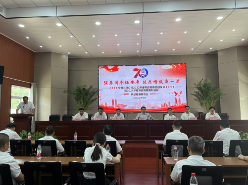 7月7日上午,安徽二建公司举行了“强基固本保安康 提质增效争一流”2022年劳动竞赛启动仪式暨2021年度劳动竞赛表彰会议。公司领导出席会议,劳动竞赛委员会成员、所属各单位主要领导、分管生产及质量副经理、工会主席、工程管理科、安全科全体人员、参赛项目经理代表等共80余人参会。会议由党委副书记、工会主席王军主持。