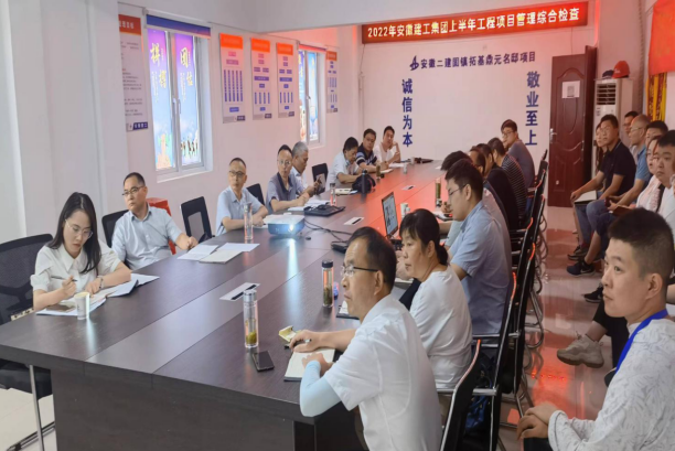 为扎实推进“项目基础管理年”活动,以检查促落实、促整改、促提升,2022年6月28日,建工股份公司工程管理部(安全监察局)督查员范毓庆一行8人赴安徽二建固镇拓基鼎元名邸项目,开展上半年工程项目管理综合检查工作。安徽二建公司党委委员、副总经理叶和永,总经理助理、第一分公司经理崔书斌及公司相关职能部门负责人参加。
