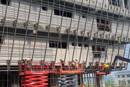 目前,宿州三馆一院一中心项目已全面进入到装饰装修阶段,按照下半年生产目标,项目部针对室内装修、室外铺装、幕墙安装、钢网架等工作内容细化阶段目标和责任人,每晚组织技术科、施工科与装修班组、安装班组召开生产进度分析会,对当天问题及时沟通和解决,保证不耽误生产进度。