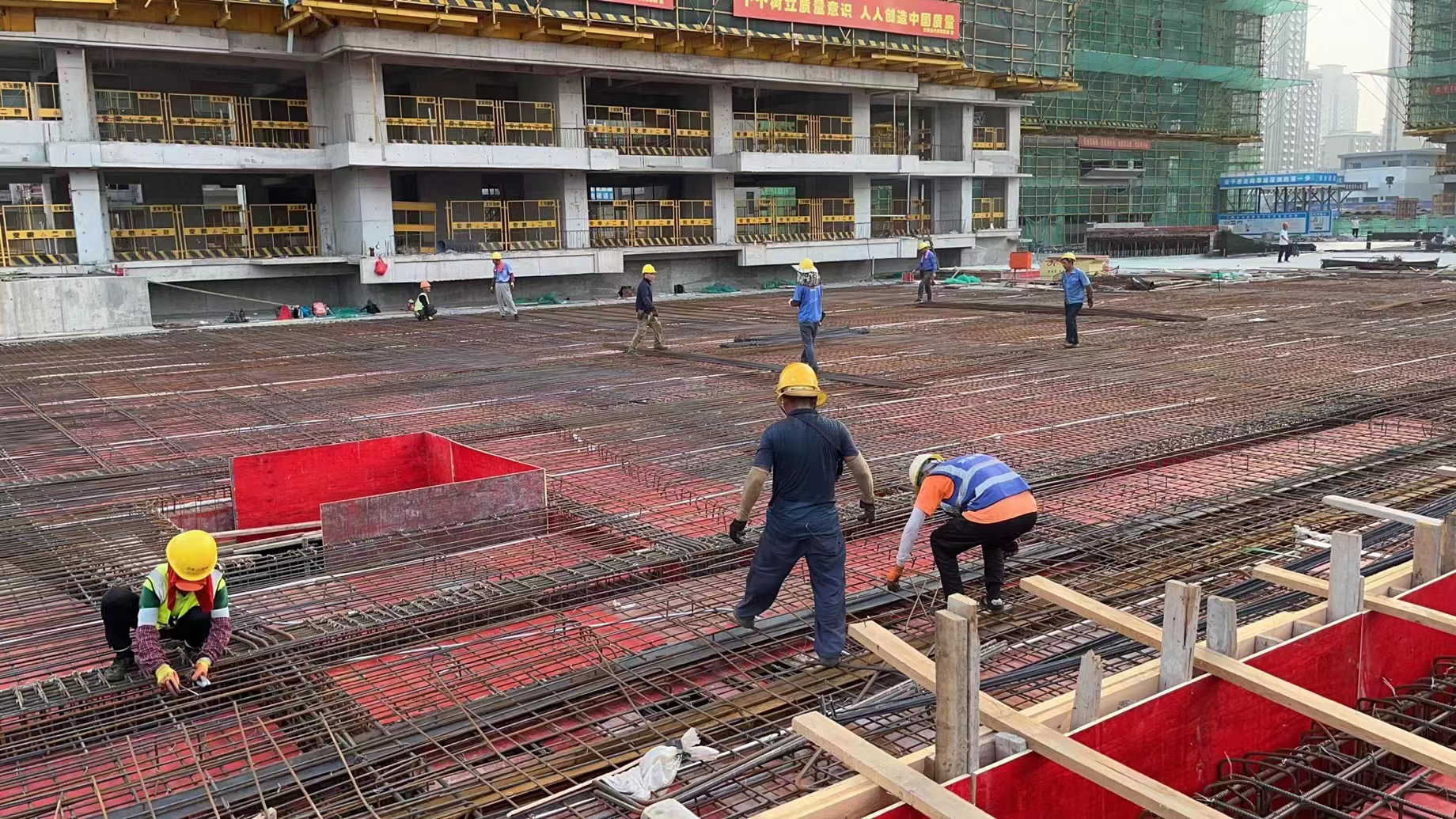 自开展劳动竞赛以来,无为玖悦府项目部为保证施工进度,值班经理每日带领项目安全员、质量员及工长配合夜间施工生产管理,要求各作业班组将施工计划制定到每周进行督查,根据质量、安全、进度等方面的完成情况,对劳务公司实行综合评比考核,形成全员抓资源配置、抓工序衔接、抓安全质量、抓施工进度的良好局面,迅速掀起大干热潮。