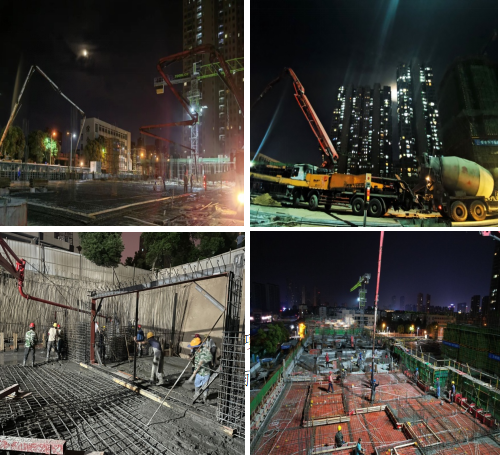 为完成各项节点计划,项目管理人员带领各劳务班组“抢晴天、战雨天,牛毛细雨当好天”,抢抓工期,比拼进度;进入夏季以来,持续高温,市气象部门接连多次发布橙色预警,户外温度常达40度以上,为确保工人作业安全,项目部及时调整施工作业时间,在确保施工安全的前提下,采取“干两头、歇中间”的施工措施,组织班组加班加点分批交叉作业,呈现出“月亮底下当白天,不给黑夜留时间”的大干火热场面。同时项目部每日在高温时段为现场施工人员送去防暑药品和降温饮品,防止意外发生。随着最近气温逐渐转凉,整个施工现场挖机声、机械声、泵送声相互交织;夜色下施工现场灯光如昼,人头躜动;渣土车、混凝土罐车川流不息往返穿梭,现场各个工作面的施工人员都卯足劲往前冲。