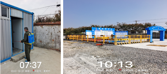 肥东黄栗基地每天拿牌进出人员核验、扫码、测温、登记工作。